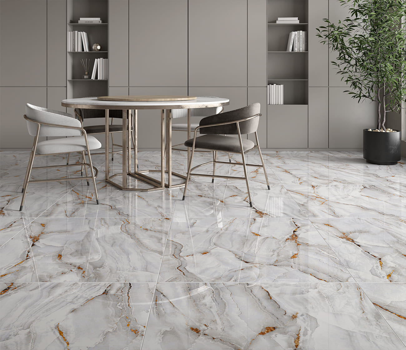 O piso Primus 81×81 Polido da linha Formigres Prime oferece um visual sofisticado e moderno, inspirado em mármore claro com veios suaves. Seu acabamento polido espelhado proporciona brilho refinado e elegância, ampliando a sensação de espaço. Ideal para ambientes internos residenciais ou comerciais de tráfego leve que buscam uma estética atemporal e de alto padrão.