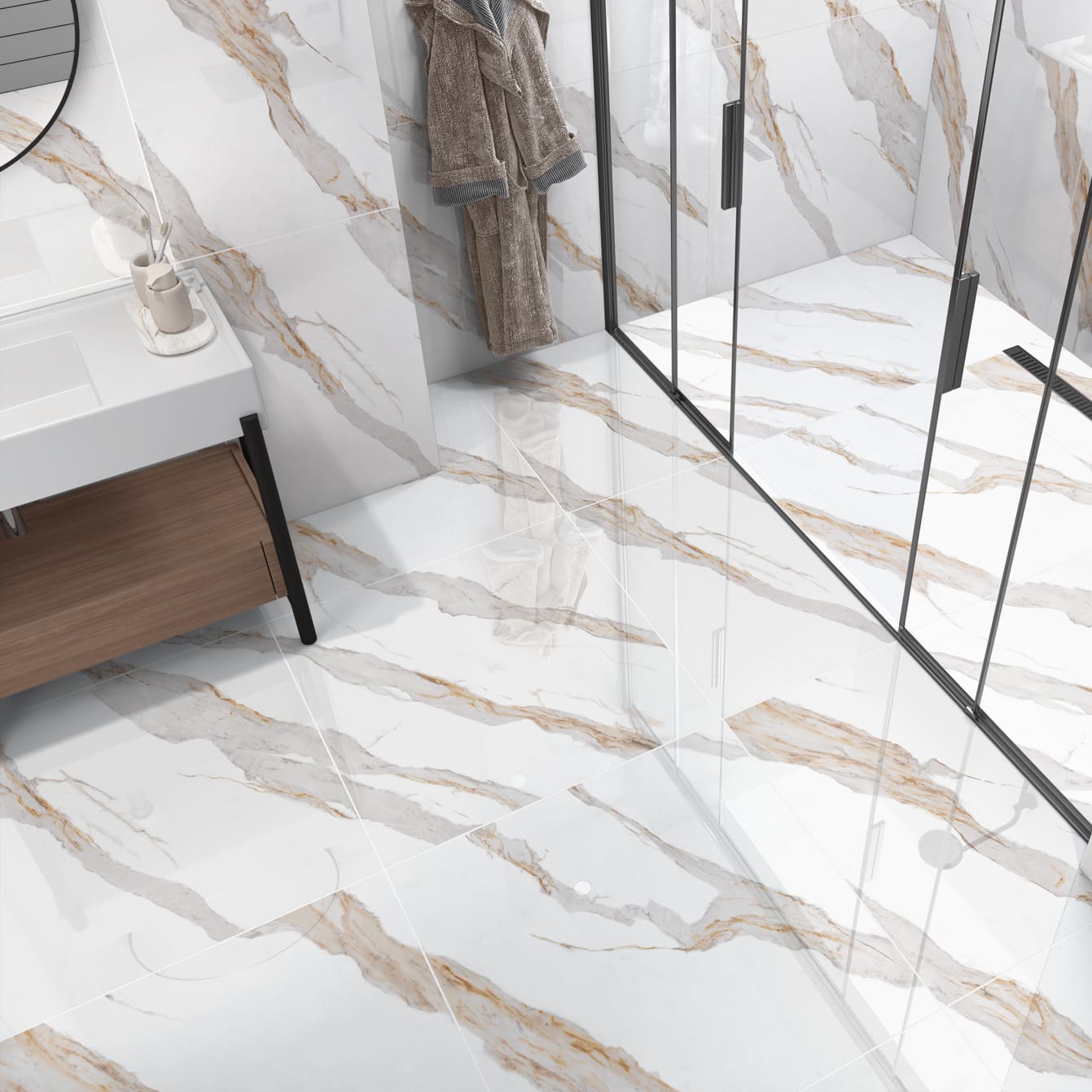 • Marmorizado de alta definição com veios marcantes no estilo Calacata.